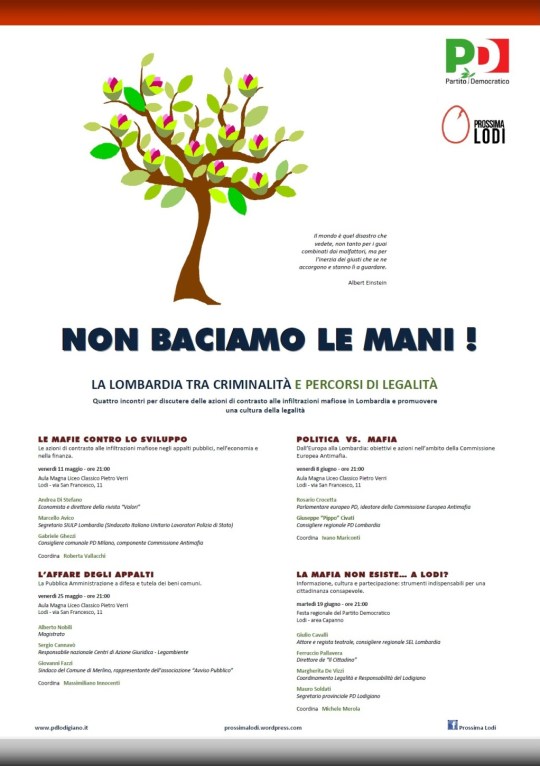verrà attuata la Consulta per la legalità e la sicurezza, dato il pieno sostegno all’Associazione Libera nella lotta contro le mafie. Garantiremo la trasparenza del nostro operato con atti e delibere pubbliche.