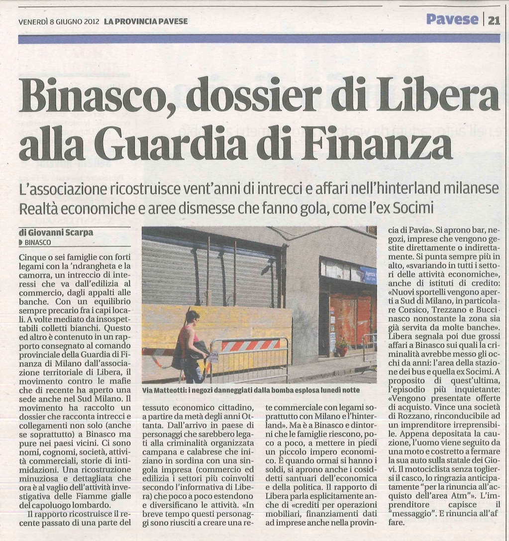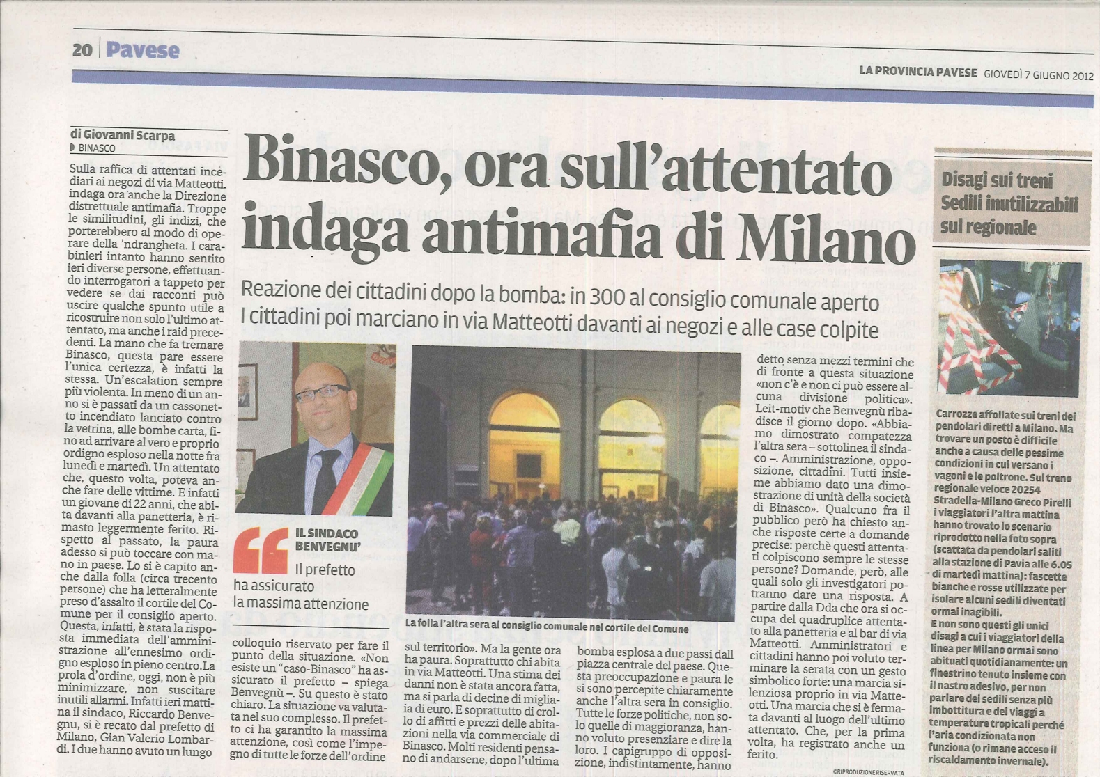 piccola rassegna stampa sugli ultimi articoli apparsi sulla Provincia Pavese negli ultimi giorni riguardanti Binasco.