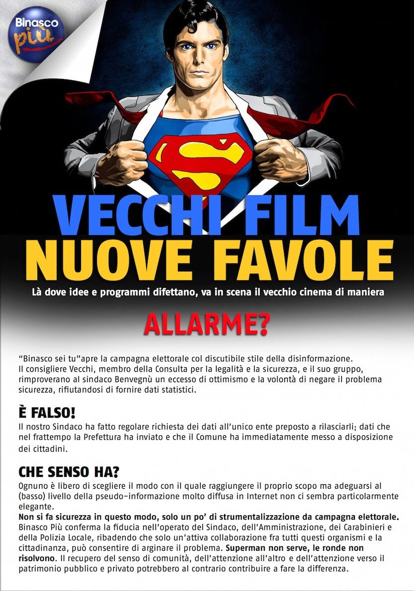 Binasco sei tu e il consigliere Mario Vecchi hanno scelto di aprire la loro campagna elettorale con il più banale e abusato dei temi: quello della sicurezza.