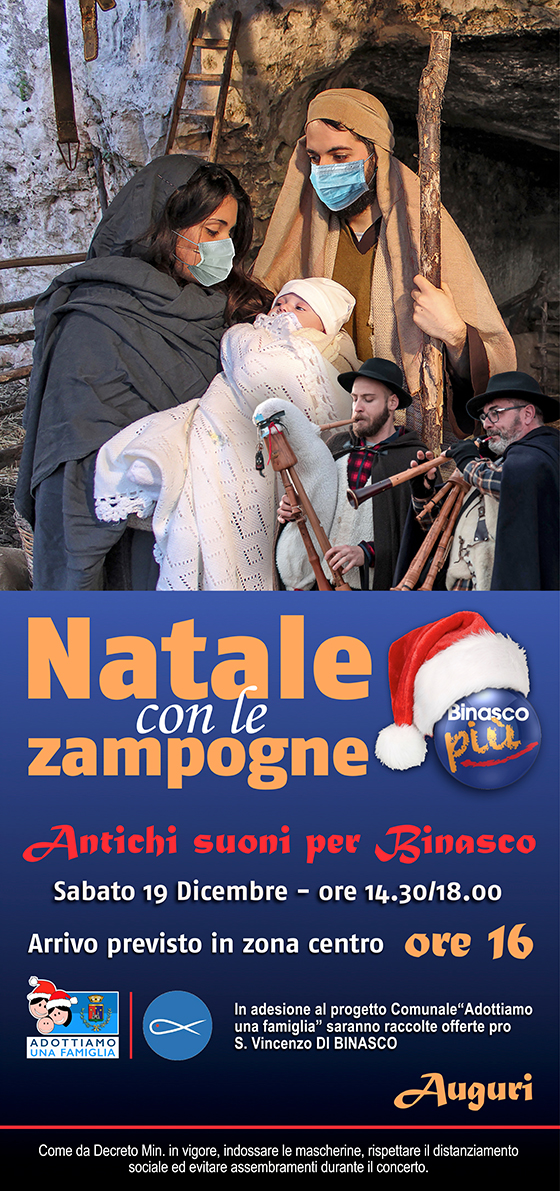 L’iniziativa Natale con le Zampogne, in adesione al progetto comunale “Adottiamo una famiglia“, ha raccolto 335€ che verranno devoluti all’associazione San Vincenzo di Binasco.